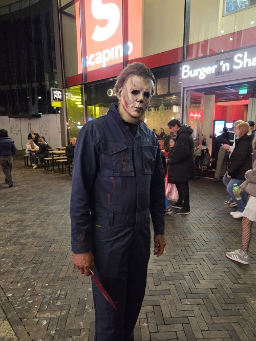 Man met een mes tijdens Halloween 2025 in het Stadshart in Zoetermeer.
